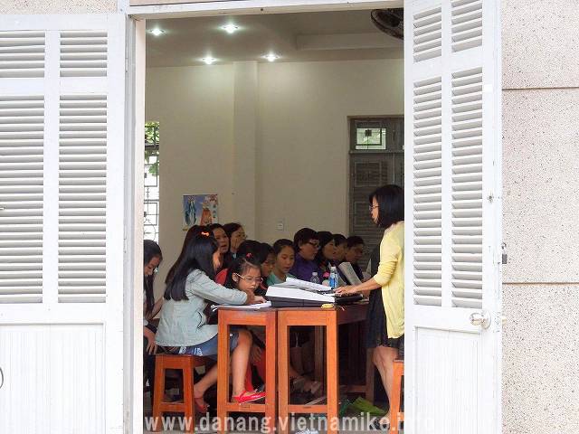 キリスト教徒の方ならば教会内へ入ってベトナム人キリスト教徒の方たちと一緒に合唱に参加してもかまいませんが、そうでない方は洗礼を受けていないので教会の外で見学なり参加するなりしましょう。